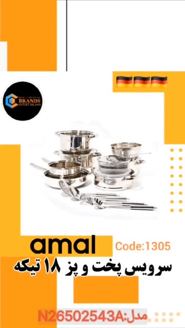 🍳 سرویس پختوپز استیل ضدزنگ آمال (Amal) مدل N26502543A یک ست کامل و لوکس آشپزخانه است که با طراحی زیبا و بدنهی براق، مناسب آشپزی روزمره و حرفهای میباشد.