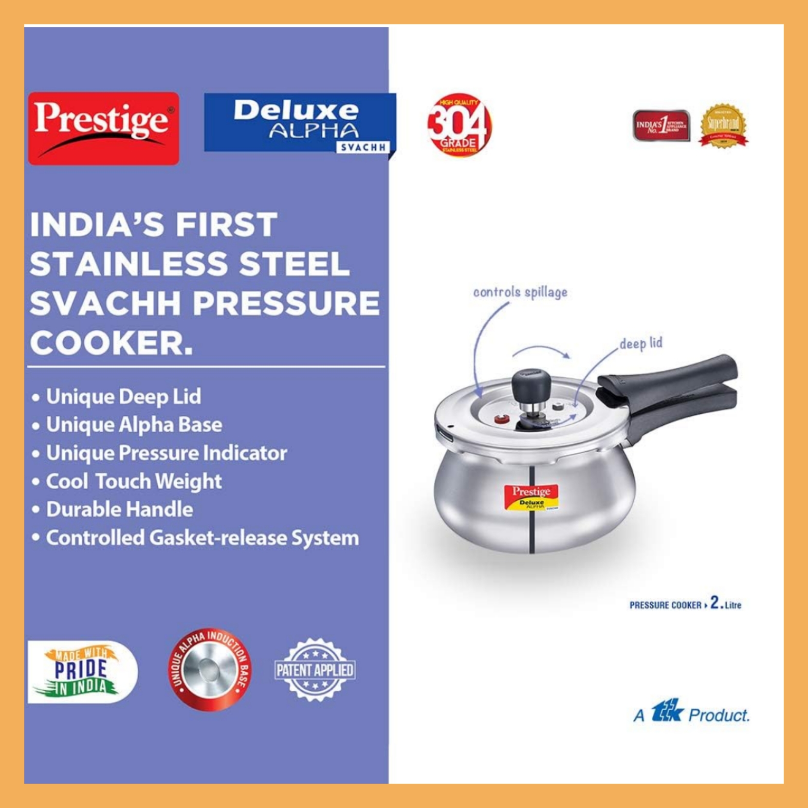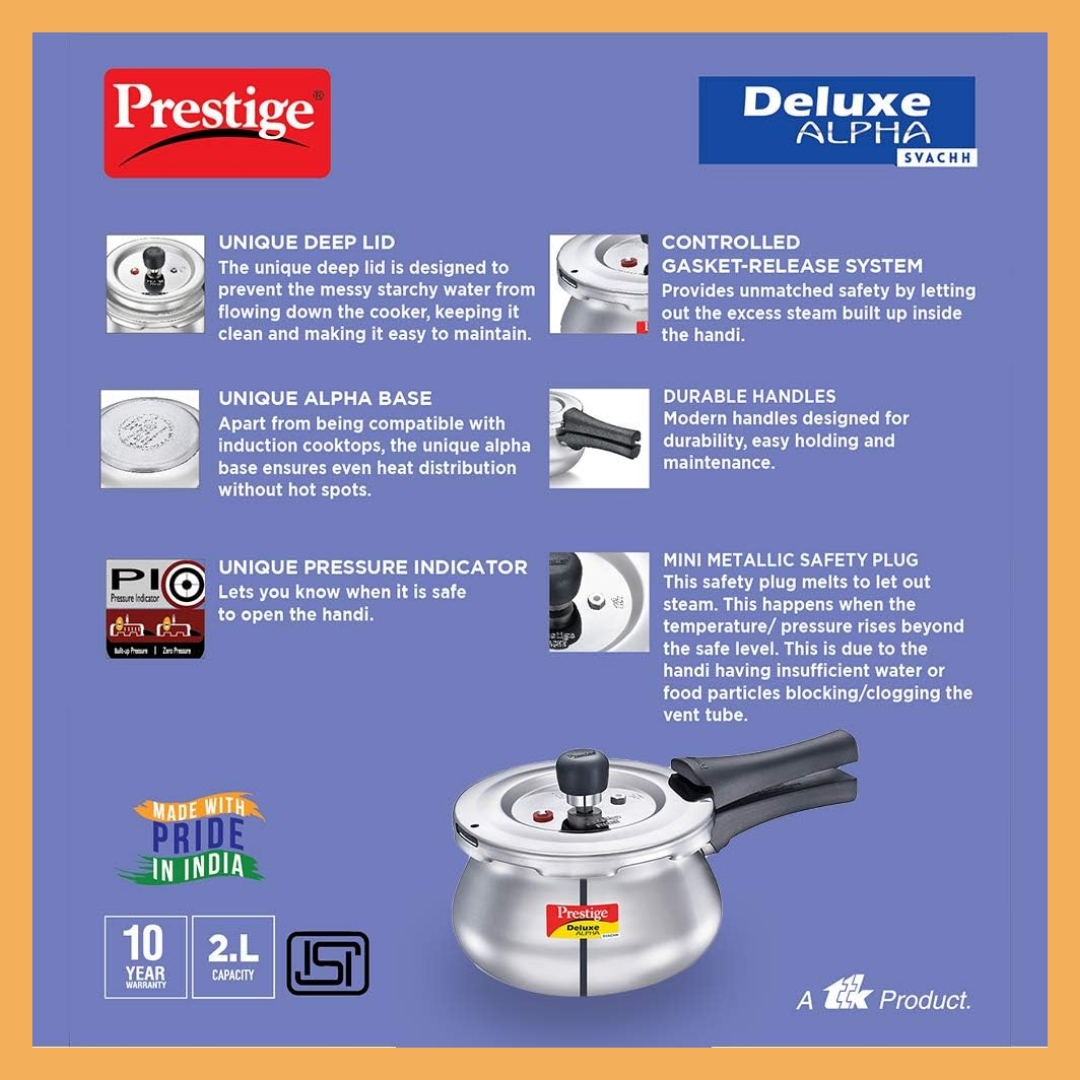 زودپز برند: پرستیژ مدل: 20244 _Deluxe Alpha Svachh ظرفیت: 2 لیتر