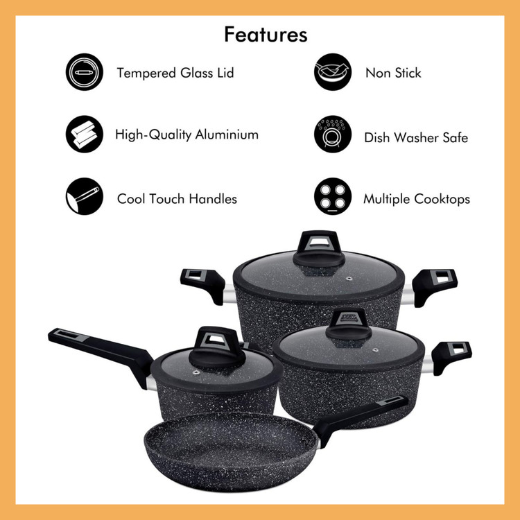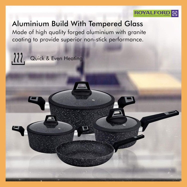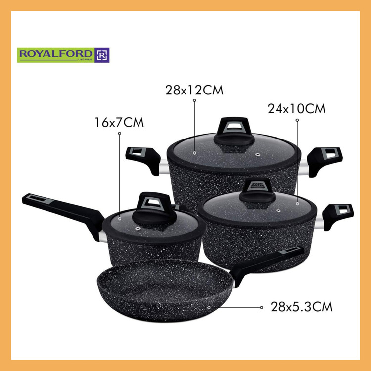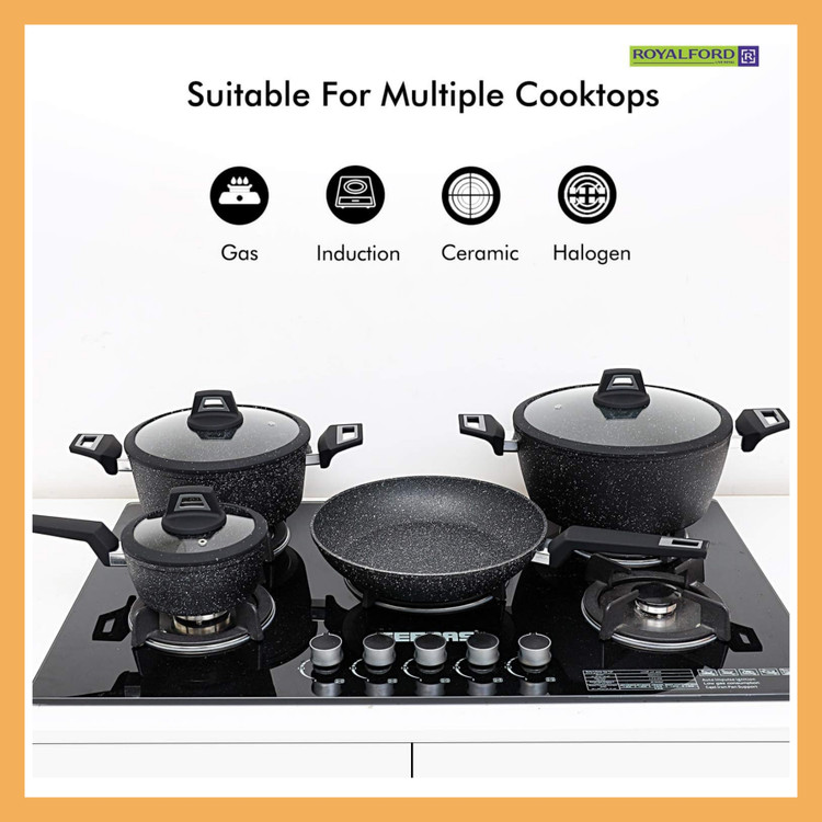 سرویس پخت و پز ۷ پارچه رویال فورد مدل RF9557 با بدنه آلومینیوم فورج شده و پوشش گرانیتی نچسب، انتخابی عالی برای آشپزخانههای مدرن است. این سرویس علاوه بر طراحی شیک، کیفیت و دوام بالایی برای آشپزی روزمره دارد.