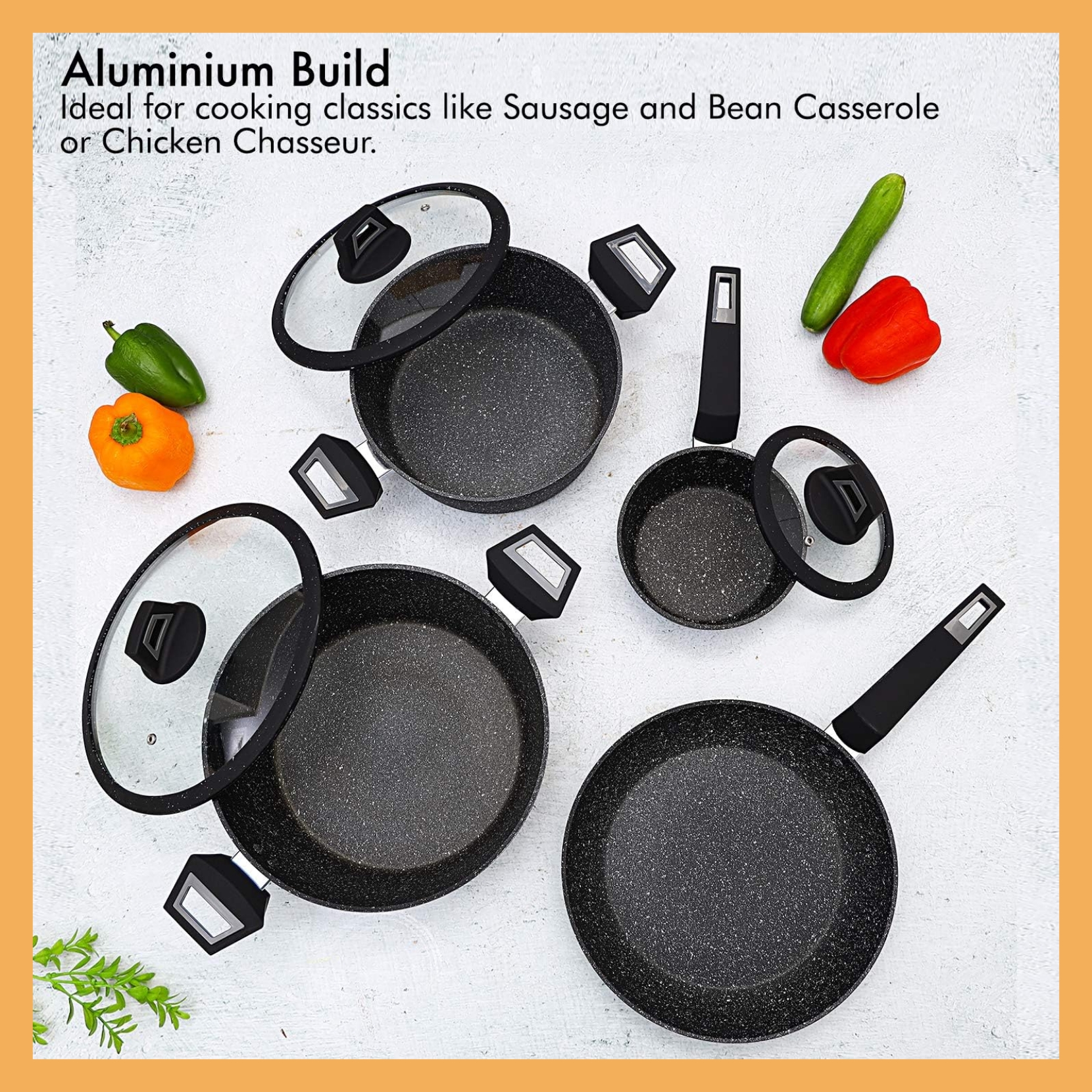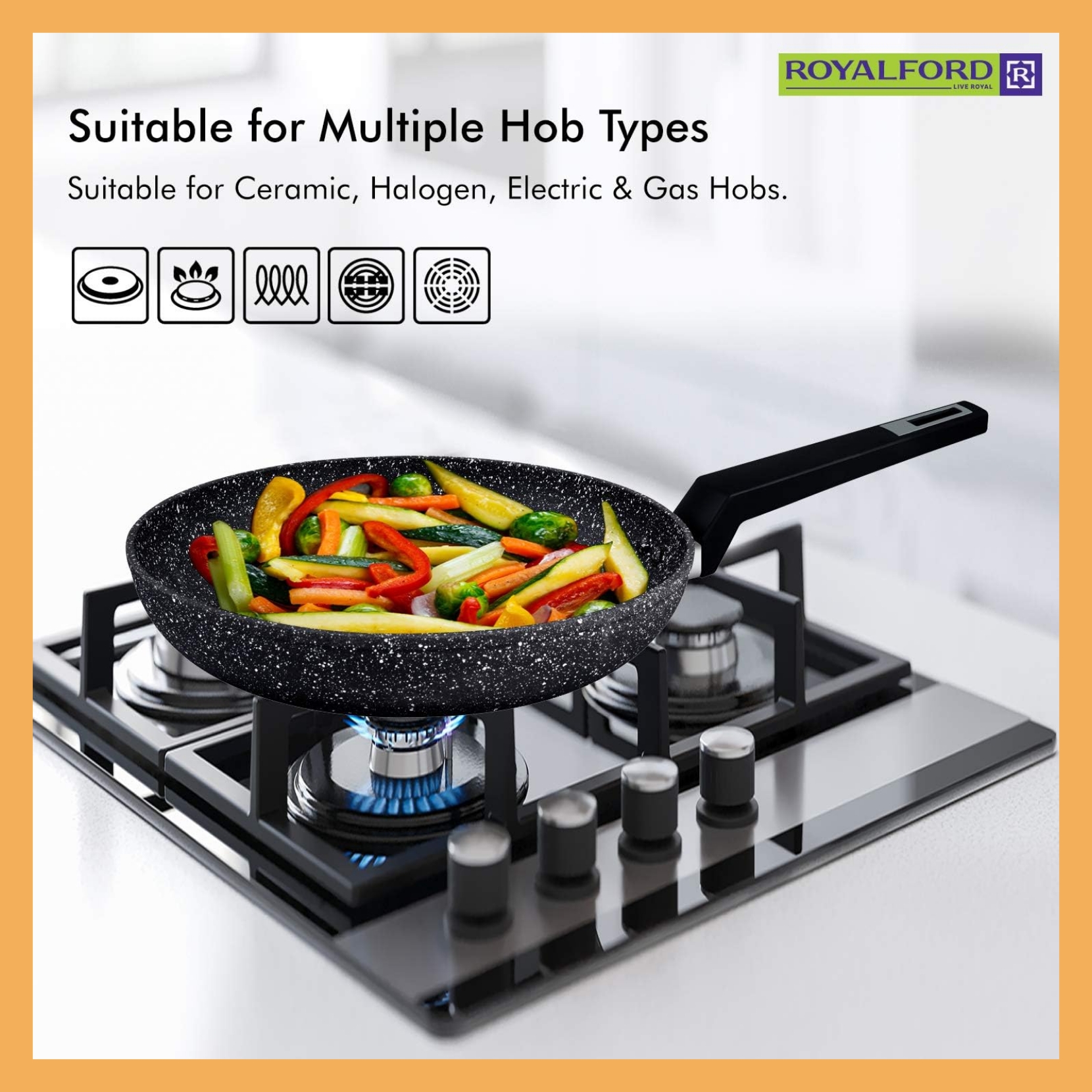 سرویس پخت و پز ۷ پارچه رویال فورد مدل RF9557 با بدنه آلومینیوم فورج شده و پوشش گرانیتی نچسب، انتخابی عالی برای آشپزخانههای مدرن است. این سرویس علاوه بر طراحی شیک، کیفیت و دوام بالایی برای آشپزی روزمره دارد.