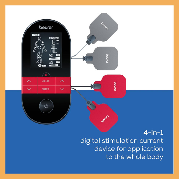 ماساژور دیجیتال بیورر EM59 با ترکیب فناوریهای TENS، EMS، ماساژ و گرمایش یک دستگاه کامل برای تسکین درد، تقویت عضلات و آرامش روزانه است.