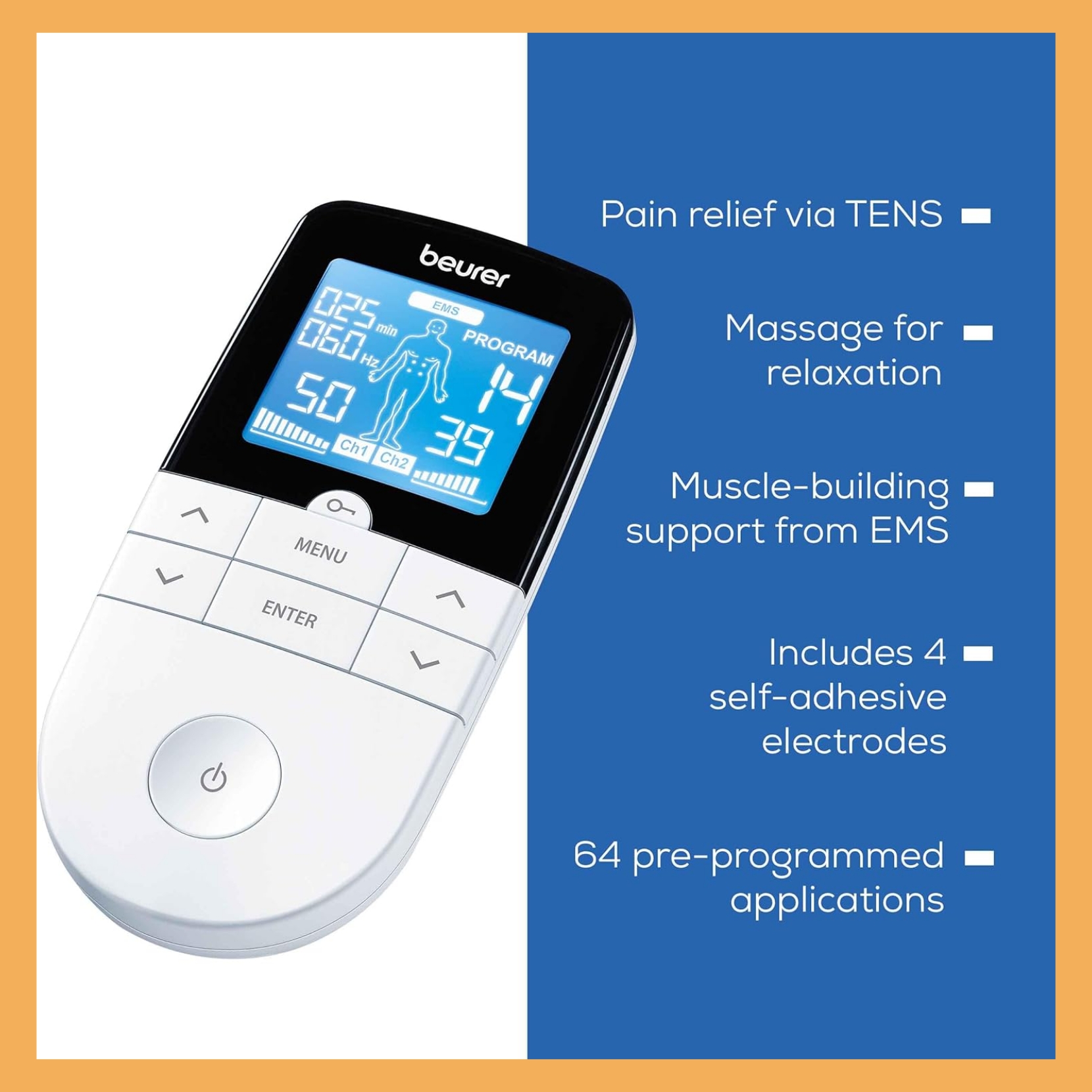 ماساژور دیجیتال بیورر EM49 یک دستگاه چندمنظوره با فناوریهای TENS، EMS و ماساژ است که برای تسکین درد، تقویت عضلات و آرامش روزانه طراحی شده است.