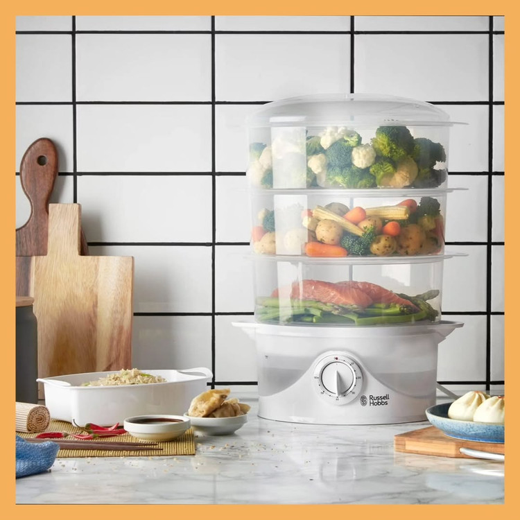 بخارپز Russell Hobbs مدل 21140 انتخابی عالی برای پخت سالم و سریع سبزیجات، برنج و گوشت است. سه طبقه قابل جداسازی و محفظه شفاف، تجربهای راحت و کارآمد برای آشپزی روزمره ارائه میدهد.