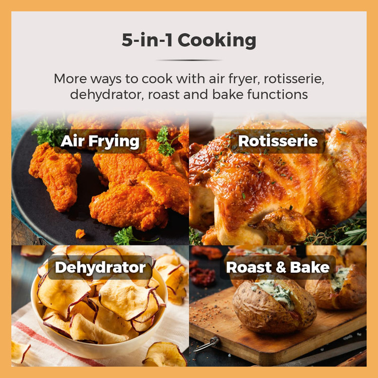 🍗 چرخش هوای داغ: مناسب برای کباب کردن، برشته کردن و خشک کردن میوه و سبزیجات