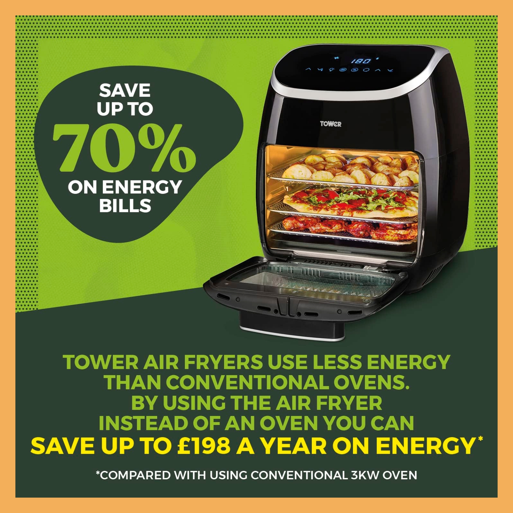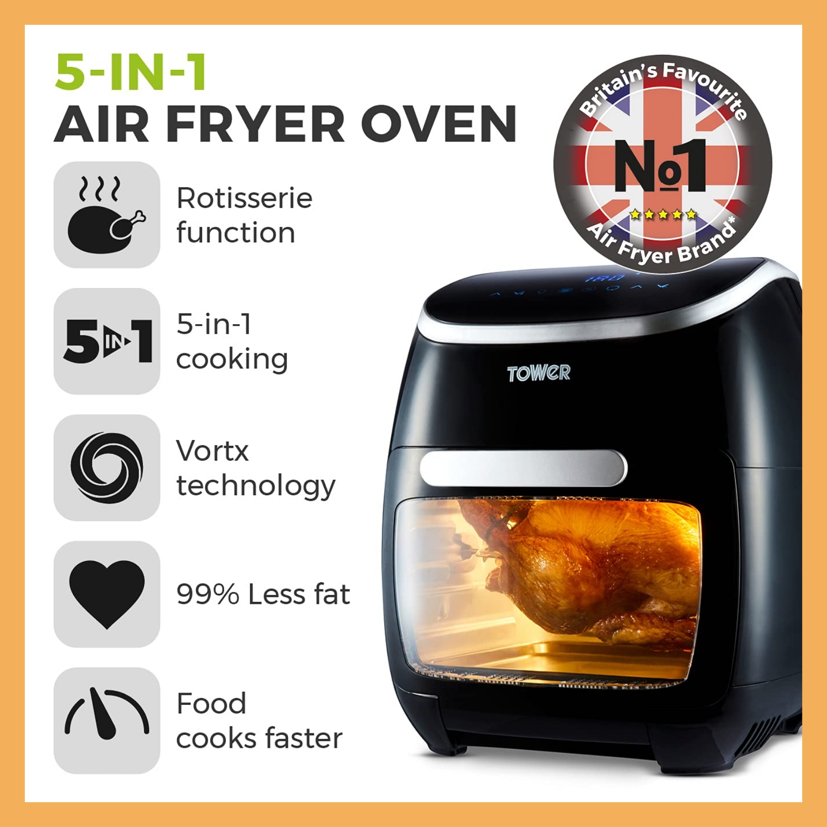 این هواپز Tower مدل T17039 انتخابی عالی برای کسانی است که به دنبال پخت سالم، سریع و متنوع هستند و ظرفیت بالا برای خانواده دارند. استفاده از فناوری گردش سریع هوا و تایمر قابل تنظیم، تجربهای راحت و بهینه برای آشپزی فراهم میکند.