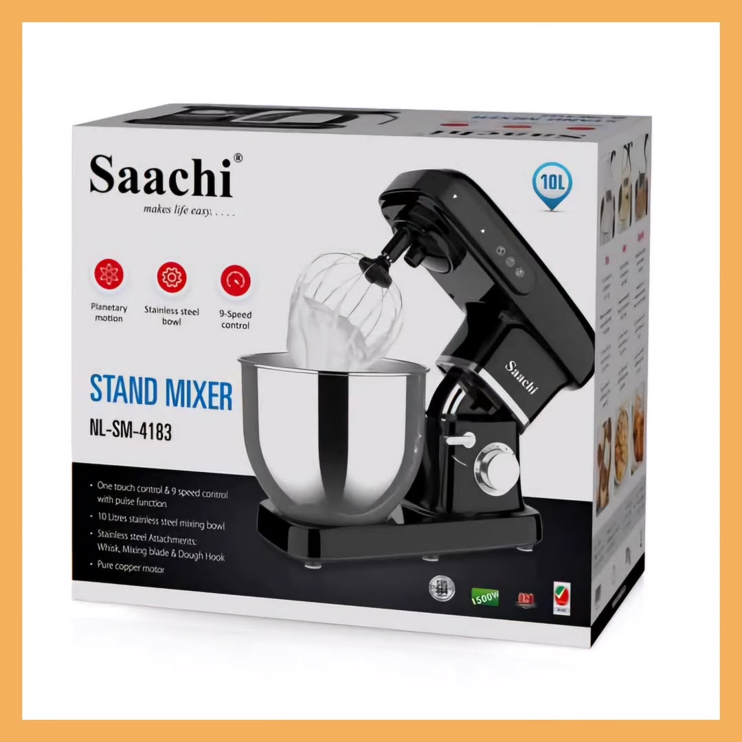 همزن حرفهای Saachi NLHM4183 انتخابی مناسب برای آشپزخانههای خانگی حرفهای و حتی قنادیهای کوچک است. با موتور قدرتمند 1500 وات و کاسه بزرگ 10 لیتری، قابلیت آمادهسازی حجم بالای خمیر و مواد کیک را بدون فشار به موتور دارد. سیستم چرخش سیارهای باعث میشود مواد کاملاً یکدست مخلوط شوند.
