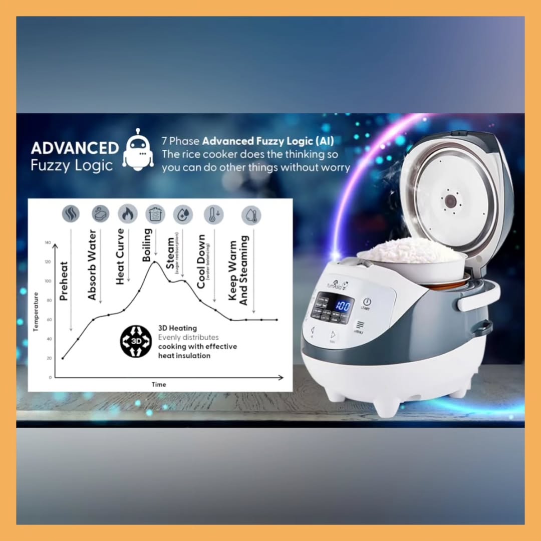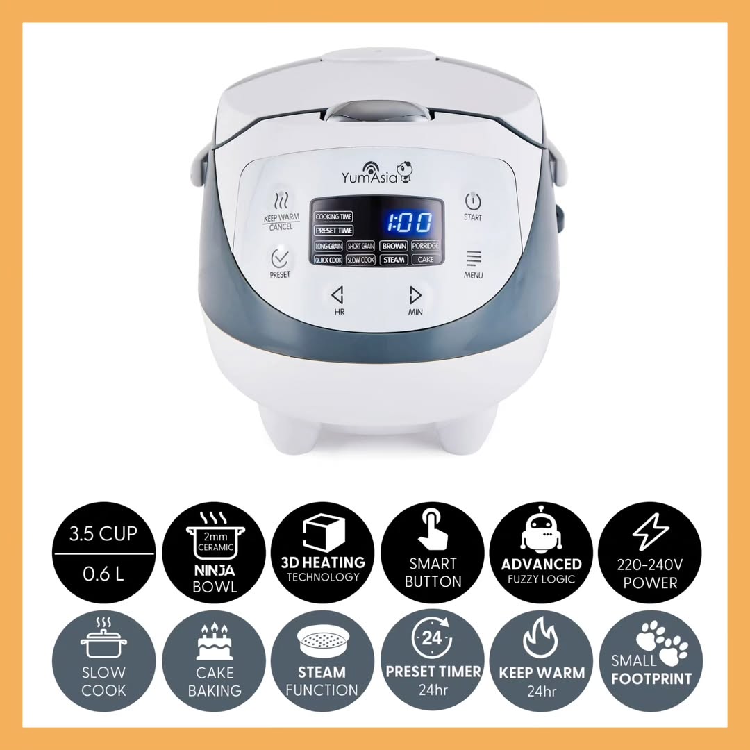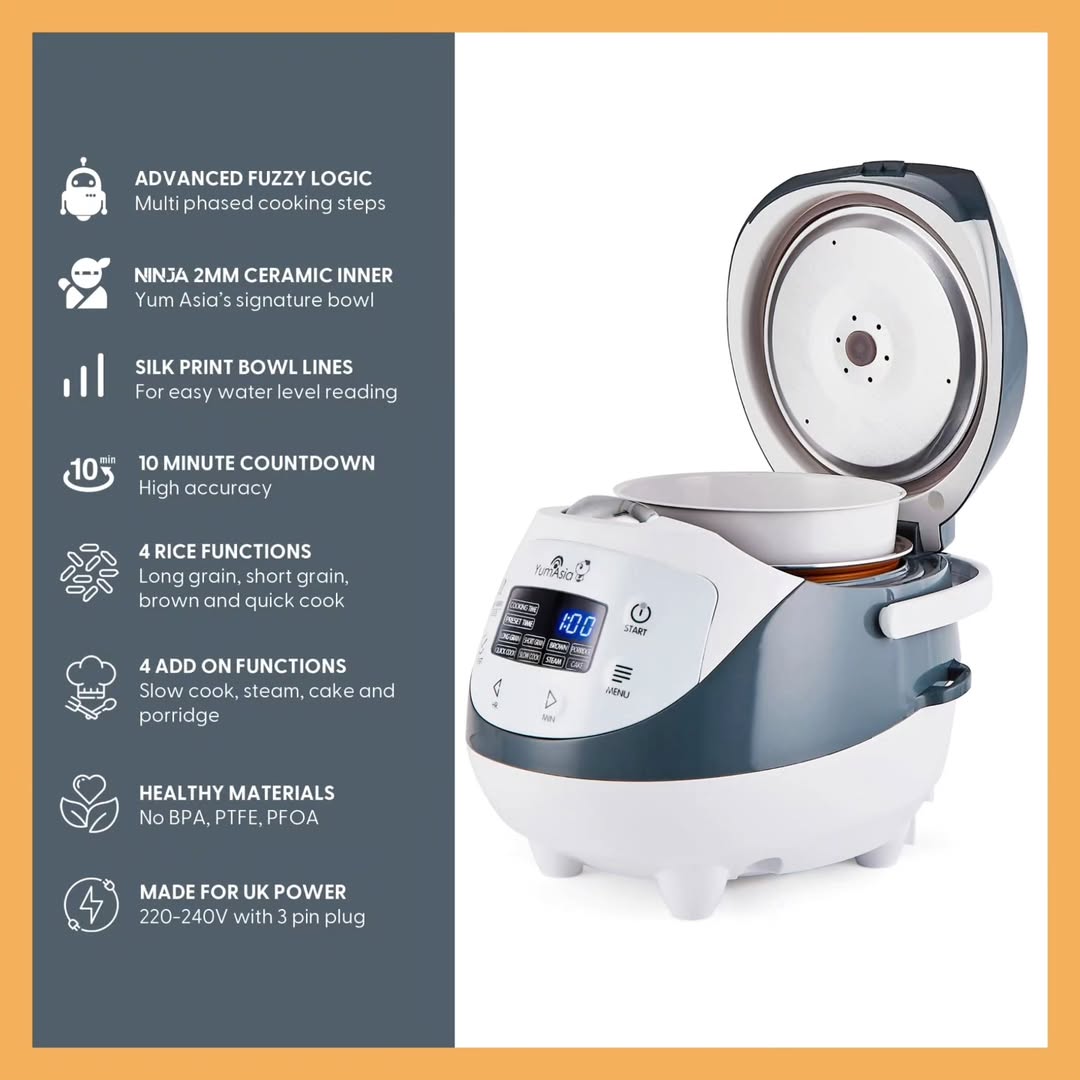 مینی پلوپز YumAsia یکی از محبوبترین پلوپزهای جمعوجور بازار جهانی است. این مدل با طراحی زیبا و فناوری Fuzzy Logic میزان دما و زمان پخت را هوشمندانه تنظیم میکند تا برنج با بافت یکدست و کیفیت عالی پخته شود. قابلمه داخلی آن از سرامیک 5 لایه نینجا ساخته شده که دوام بسیار بالایی دارد و گزینهای سالمتر نسبت به تفلون به حساب میآید.