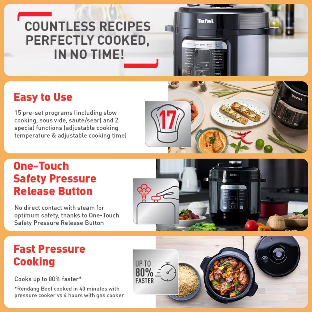 مولتیکوکر هوشمند تفال (Tefal) مدل Smart Multi Cooker دستگاهی چندکاره و حرفهای برای آشپزخانههای مدرن است. این محصول میتواند بهعنوان زودپز، پلوپز، آرامپز و بخارپز مورد استفاده قرار گیرد و با طراحی زیبا و کاربری آسان، گزینهای ایدهآل برای پخت سریع و سالم انواع غذاهاست.