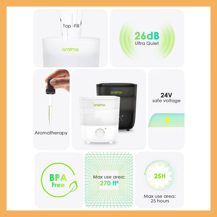 کد محصول:۱۰۵۵ نام محصول: دستگاه بخور سرد و چراغ خواب برند: اورایمو(Orimo) مبدا برند: ساخت: چین توضیحات: تمیز کردن آسان، ظرفیت2.5 لیتری قابلیت استفاده از روغنهای استنشاقی فاقد BPA استفاده جهت اتاق کودک و بزرگسال و سالنهای ورزشی پر کردن راحت مخزن آب بدون صدا استفاده آسان رنگ: سفید درجهبندی: یک