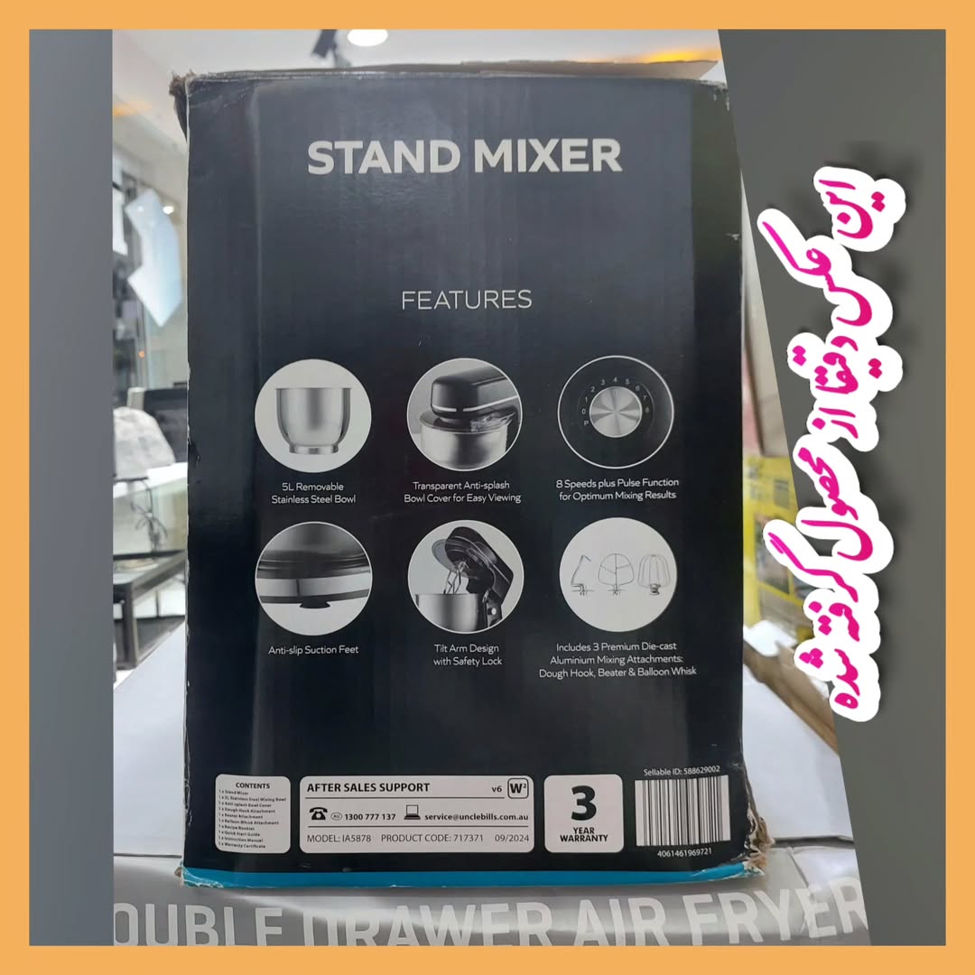 همزن پایهدار Sterling IA5878 طراحی قدرتمندی دارد و با قدرت ۱۲۰۰ وات، مناسب برای خانوادههایی است که به شیرینیپزی حرفهای علاقه دارند. این دستگاه با ظرفیت ۵ لیتری خود امکان آمادهسازی حجم بالای مواد را فراهم میکند و برای استفاده خانگی و نیمهحرفهای گزینهای بسیار کاربردی است.