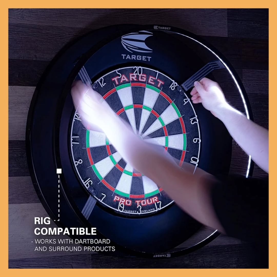 حلقه نور Target Corona Vision یکی از حرفهایترین سیستمهای نورپردازی مخصوص تخته دارت است. این مدل با استفاده از ۱۲۳ چراغ LED با نور سفید خالص، روشنایی یکنواخت و بدون سایهای ایجاد میکند که دقت پرتاب را بهطور محسوسی افزایش میدهد.