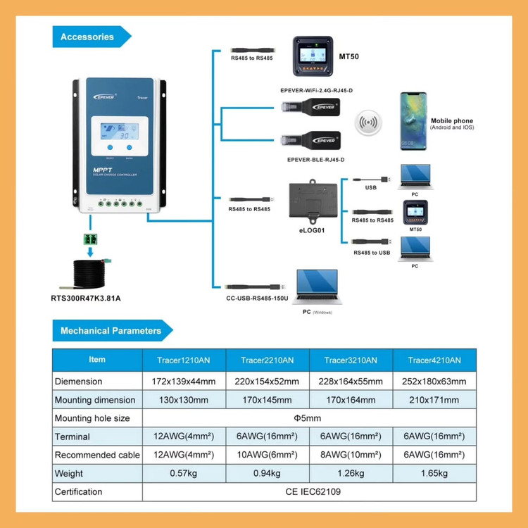 🔋 کنترلر شارژ خورشیدی MPPT ایپیاور EPEVER Tracer 4210AN