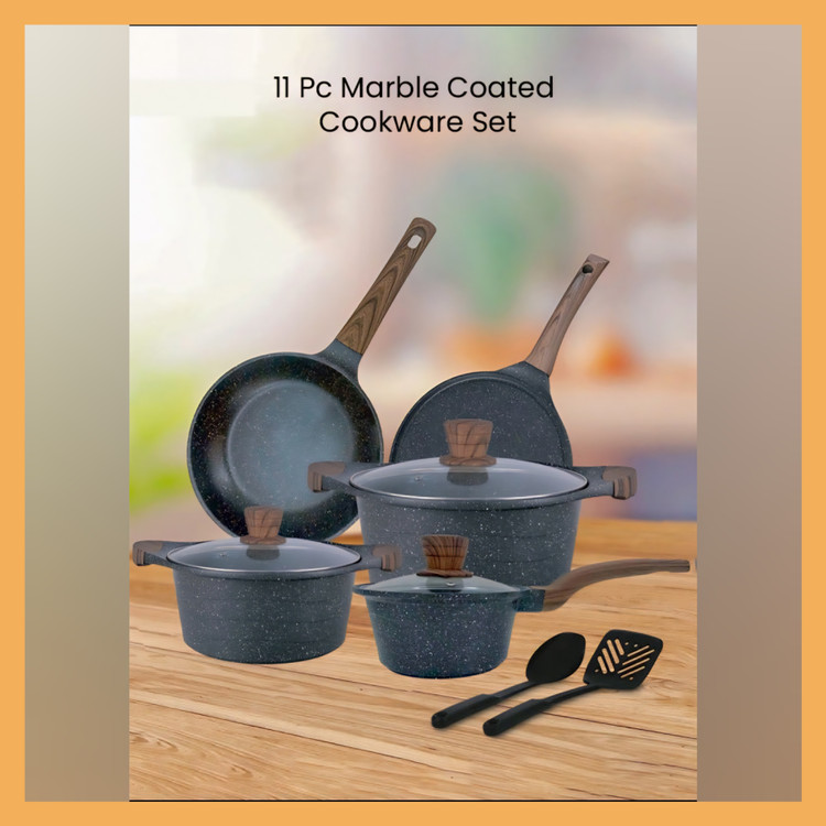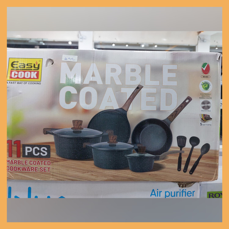 سرویس قابلمه ایزی کوک (Easy Cook) مدل AFT214 ترکیبی از زیبایی، دوام و کارایی است. بدنه آلومینیومی با روکش مرمری نچسب باعث میشود غذا به قابلمه نچسبد و شستوشوی آن بسیار آسان باشد. طراحی مرمری خاکستری جلوهای مدرن به آشپزخانه میبخشد. پخش یکنواخت حرارت باعث میشود غذاها بهتر و سریعتر پخته شوند. وجود قابلمهها و تابههای متنوع، پاسخگوی نیازهای مختلف آشپزی از خورشت گرفته تا سرخکردنی است. دربهای شیشهای مقاوم به حرارت نیز امکان مشاهده فرآیند پخت را فراهم میکنند. این سرویس انتخابی مناسب برای خانوادههایی است که به دنبال محصولی زیبا و بادوام هستند.