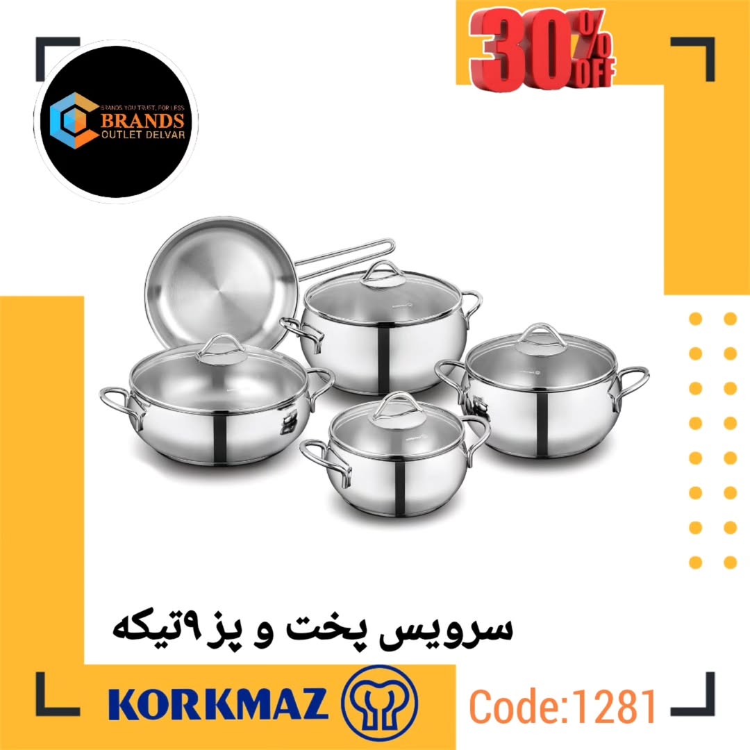سرویس پخت و پز ۹ پارچه استیل برند: کرکماز (KORKMAZ) مدل:Tombik A1800